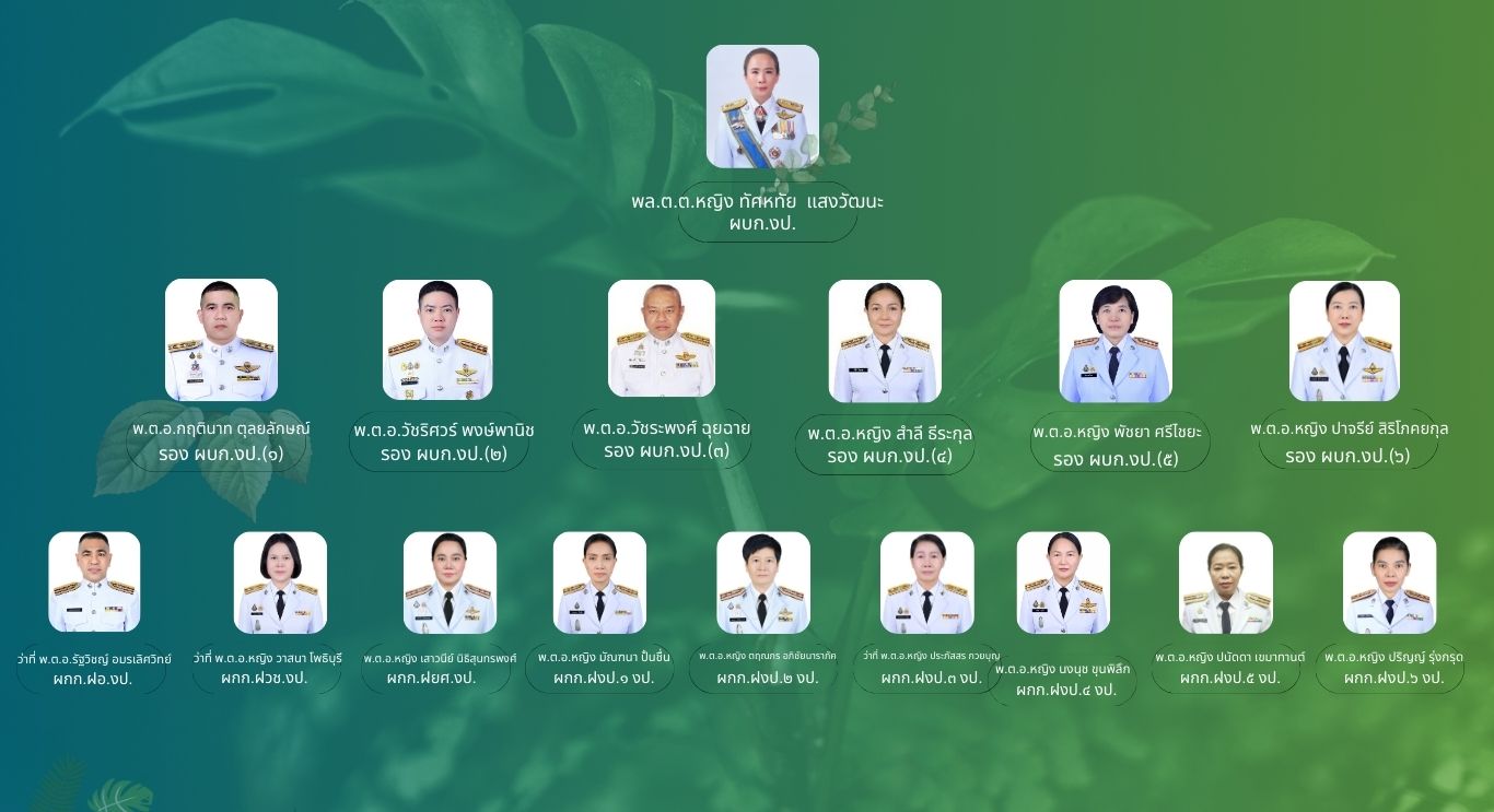 วิสัยทัศน์ ผู้บังคับการกองงบประมาณ : สุขภาพดี รู้หน้าที่ มีวินัย แต่งกายสุภาพ ขยัน ซื่อสัตย์สุจริต จิตใจงดงาม