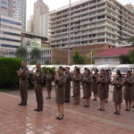 พ.ต.อ.หญิง กิดานันท์ คมขำ รอง ผบก.งป. นำข้าราชการตำรวจ งป. ร่วมปฏิบัติหน้าที่เคารพธงชาติ ณ ลานหน้าอาคาร1 ตร.
